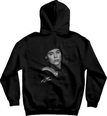 Kangourou (hoodie) enfant noir en coton unisexe, inscription à l’avant et photo au dos, Roxane Bruneau.